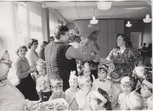 Põllumeeste päev Nõo lasteaias (1983. a). Paremal lasteaia juhataja Evi Hirvesoo. Foto: erakogu