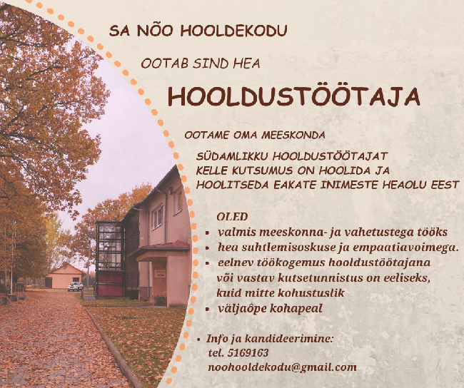 Nõo vallavalitsus otsib oma meeskonda Haldusspetsialisti , kelle töövaldkondadeks on kriisihaldus, teehoiu korraldamine ning munitsipaalvara haldus. Sinu peamised...
