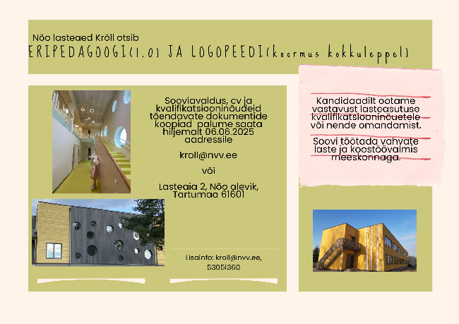 Nõo lasteaed Krõll otsib eripedagoogi ja logopeedi
